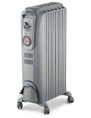 Effectively heat any room of the house with the DeLonghi portable oil-filled radiator. The heater produces the maximum amount of radiant heat while ensuring a low surface temperature, making the radiator a nice choice for homes with pets or kids. The user-friendly control panel offers an adjustable thermostat and three heat settings to customize your heating needs and optimize energy-efficient operation. For added energy savings it also features a 24-hour programmable timer. With 96 settings you can heat a room for any amount of time and for different time periods during the day and night. The anti-freeze setting allows the unit to automatically turn itself on when the temperature drops below 44 degrees F. Safety highlights include rust-resistant durable metal construction, a gently rounded design, and a thermal cut-off function that automatically turns the heater off if it starts to overheat. With its sleek look and silent operation, the DeLonghi oil-filled radiator is the perfect solution to all your heating needs.delonghi radiators,oil filled radiator heater,delonghi heater